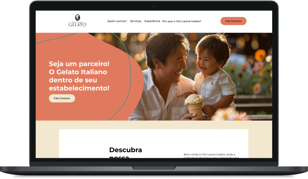O site da Vito Leone Gelato transmite uma essência acolhedora, clássica e emocional. O uso de imagens reais e afetivas, como a de um pai com seu filho saboreando gelato, cria conexão imediata com o visitante. As cores suaves, combinadas com formas curvas e tipografia elegante, reforçam a tradição da marca com um toque contemporâneo. Visualmente, o layout é limpo e bem organizado, valorizando o produto e a experiência. O site chama atenção ao unir emoção, estética refinada e navegação intuitiva, convidando o usuário a mergulhar na atmosfera da gelateria.